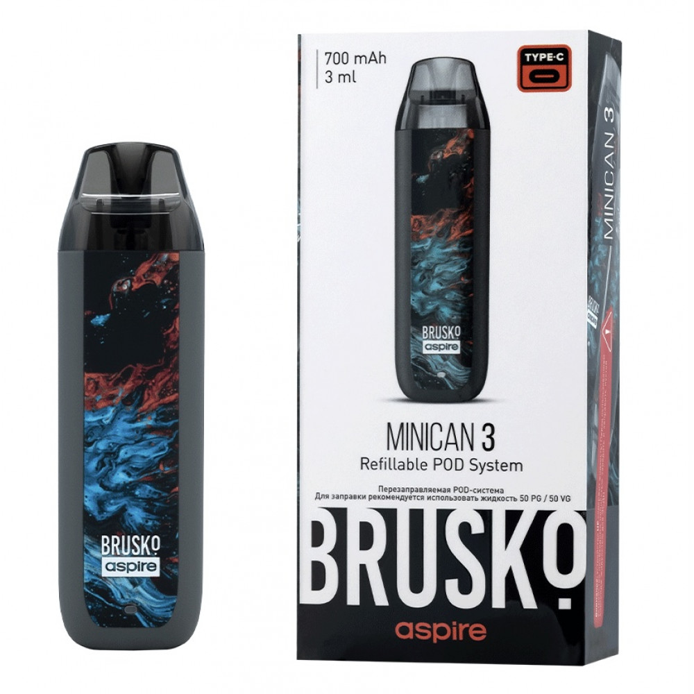 Перезаправляемая Под-Система Бруско Миникан 3 (Brusko Minican 3) 700 mah, Серый Флюид - купить в Томске